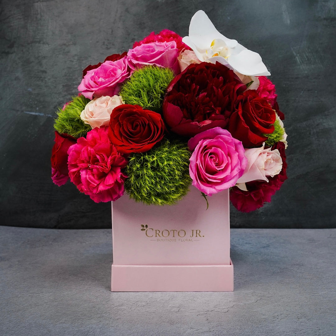 Cariño mío se expresa a través de un arreglo de flores surtidas, llenas de colores vibrantes y alegres. Cada flor, con su tonalidad única, refleja ternura y afecto, creando un mensaje cálido y lleno de energía positiva que transmite amor y alegría.